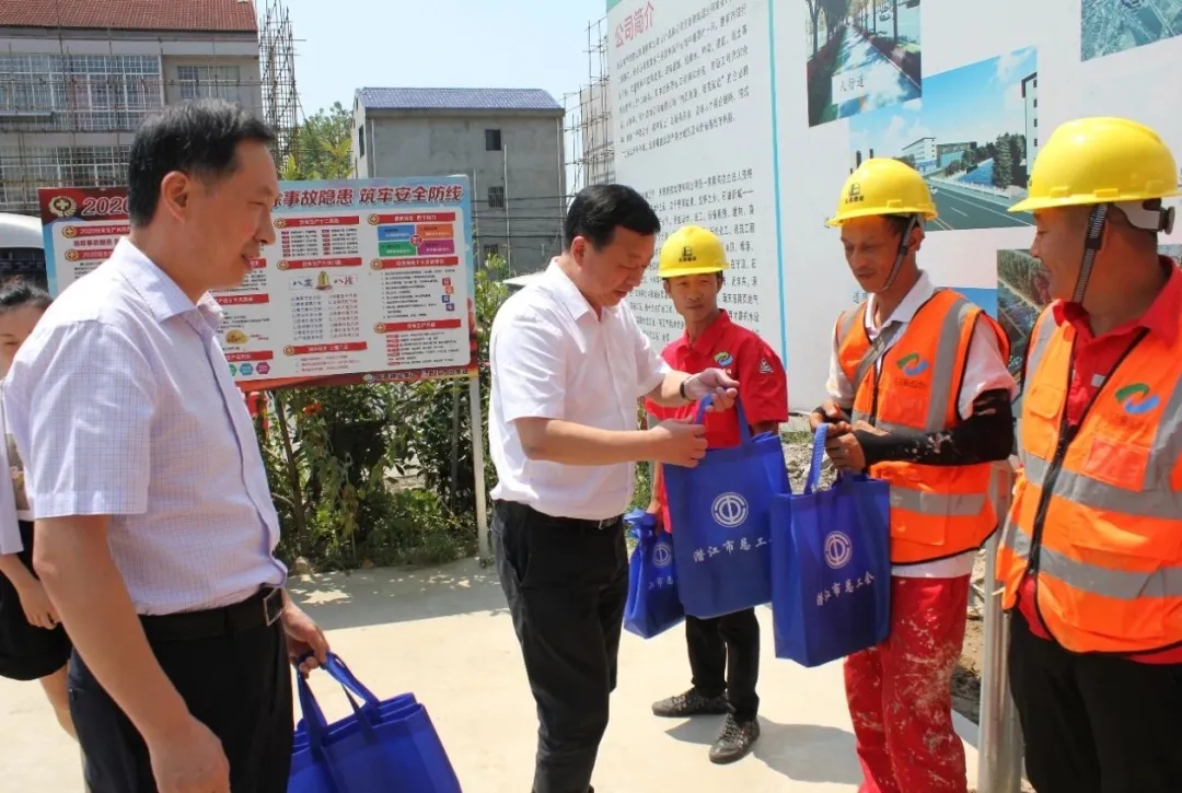 8月18日,潛江市市委書記吳祖云,市委副書記、市長龔定榮等一行到潛陽路東延景觀提升建設項目現場看望慰問奮戰在一線的施工人員,并送上了夏季清涼慰問品。