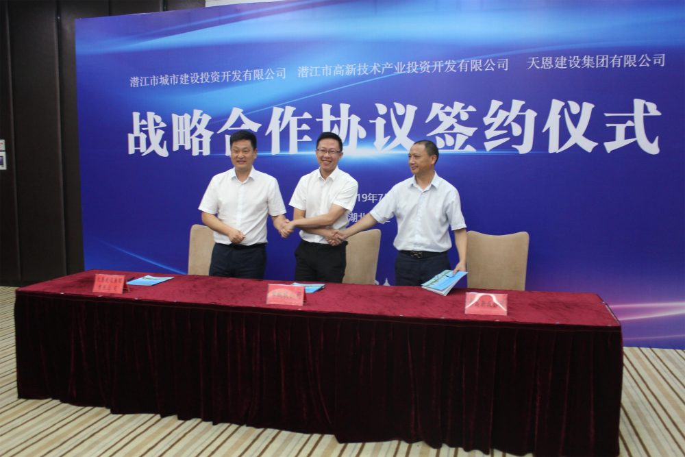 2019年7月3日上午,天恩建設(shè)集團(tuán)有限公司與潛江市城市建設(shè)投資開(kāi)發(fā)有限公司、潛江市高新技術(shù)產(chǎn)業(yè)投資開(kāi)發(fā)有限公司三方共同合作,在七喜國(guó)際大酒店舉行裝配式建筑戰(zhàn)略合作框架協(xié)議簽約儀式。